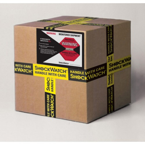 ШокВотч-Лэйбл — яркая наклейка с предупреждающей надписью + контрольный элемент, регистрирующий ударные воздействия (падения, столкновения, тряску).